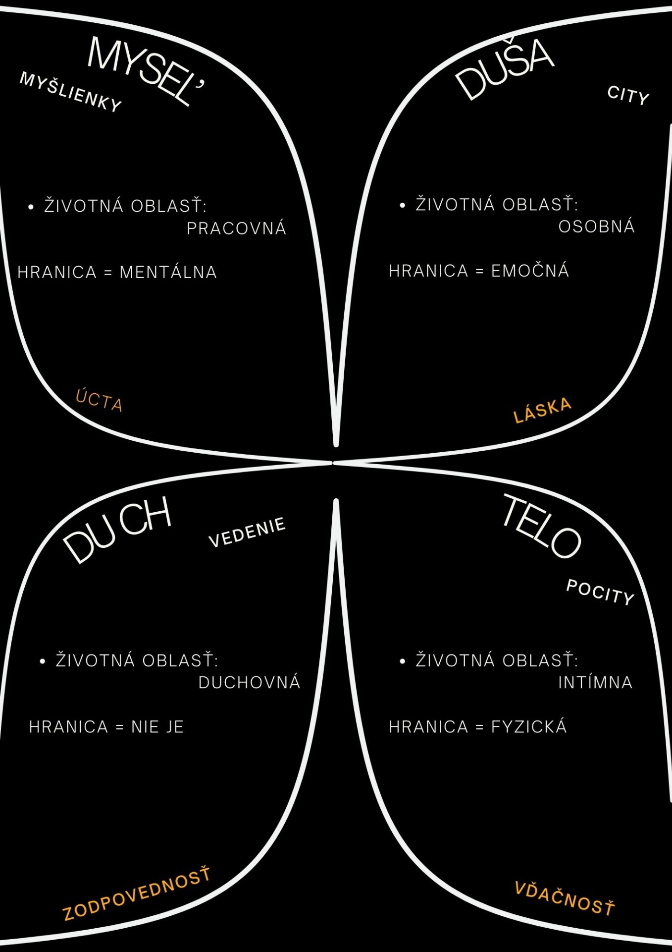 Podľa obrázku môžeme svoje vzťahy rozčleňovať do týchto základných životných oblastí (hraníc):